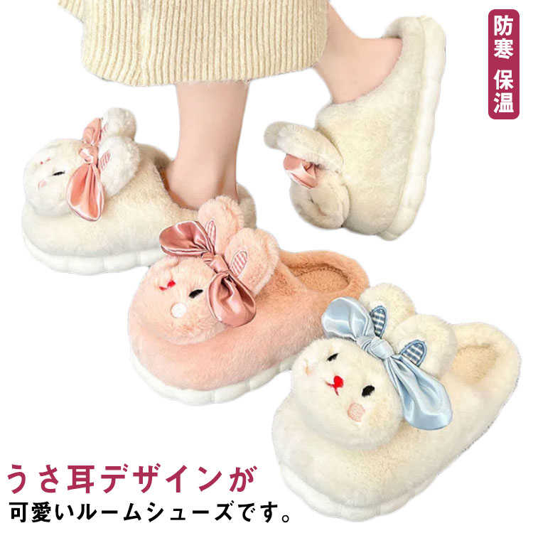 ■スリッポン ルームシューズ 起毛 室内 前詰まり 暖か レディース もこもこ うさぎ スリッパ ふわふわ