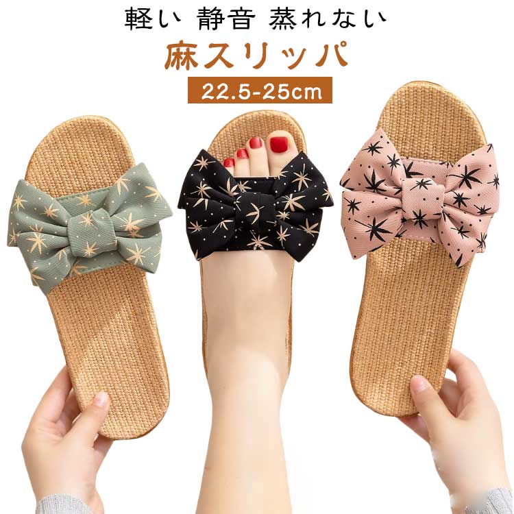 ■滑り止め ルームシューズ 夏用 夏 麻スリッパ 麻スリッパ リボン 可愛い 麻 リネン スリッパ 軽い 春 おしゃれ レディース 室内スリッパ