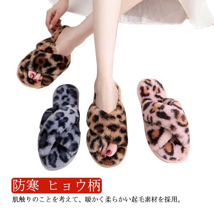 ■モコモコ スリッパ 暖かい フェイクファー ヒョウ柄 豹柄 ルームシューズ もこもこ 冬 あったか レオパード柄 レディース 洗える かわい