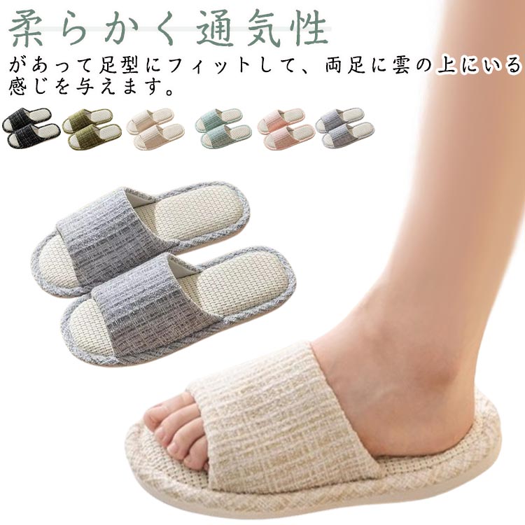 ■夏用 スリッパ 室内用 麻 リネン ルームシューズ レディース 速乾 通気性 かわいい 在宅ワーク 柔らかい 来客用 滑りにくい 蒸れない 春