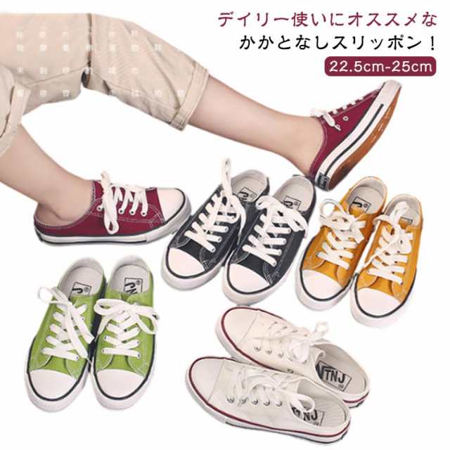 レディース かかとなし スリッパ スリッポン レースアップ シューズ 春夏 軽量 クロッグサンダル 歩きやすい フラット キャンバスシューズ ぺたんこ 履きやすい 可愛い 疲れにくい コンフォート お洒落 スニーカー