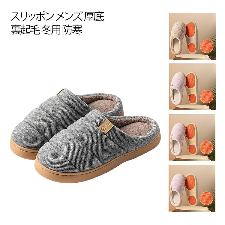 ■履きやすい ふわふわ ボア付き スリッポン 冬用 ルームシューズ 防寒 裏起毛 滑り止め あったか スリッポン 歩きやすい 厚底 スリッパ ク
