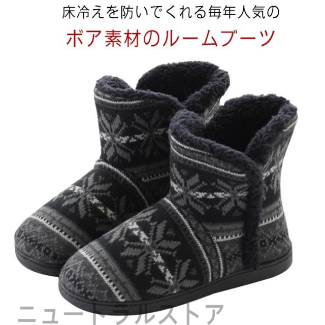 ルームブーツ 裏ボア メンズ ブーツ型 もこもこ 在宅勤務 足元 厚底 スリッパ ボア 冷え防止 かかと付き ふわふわ もこもこスリッパ あったか ルームシューズ 室内履き 暖かい ネイティブ柄 オルテガ柄 かわいい 洗える 休日