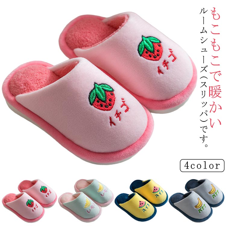 ■スリッパ ルームシューズ 子供 キッズ もこもこ 冬 暖かい イチゴ レモン スイカ バナナ 室内履き 上履き 室内スリッパ 滑り止め ルーム