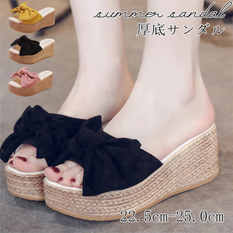■【ポイント10倍!】厚底サンダル レディース ウェッジヒール リボンサンダル リゾートサンダル スリッパ ヒール ハイヒール 夏 靴 女性
