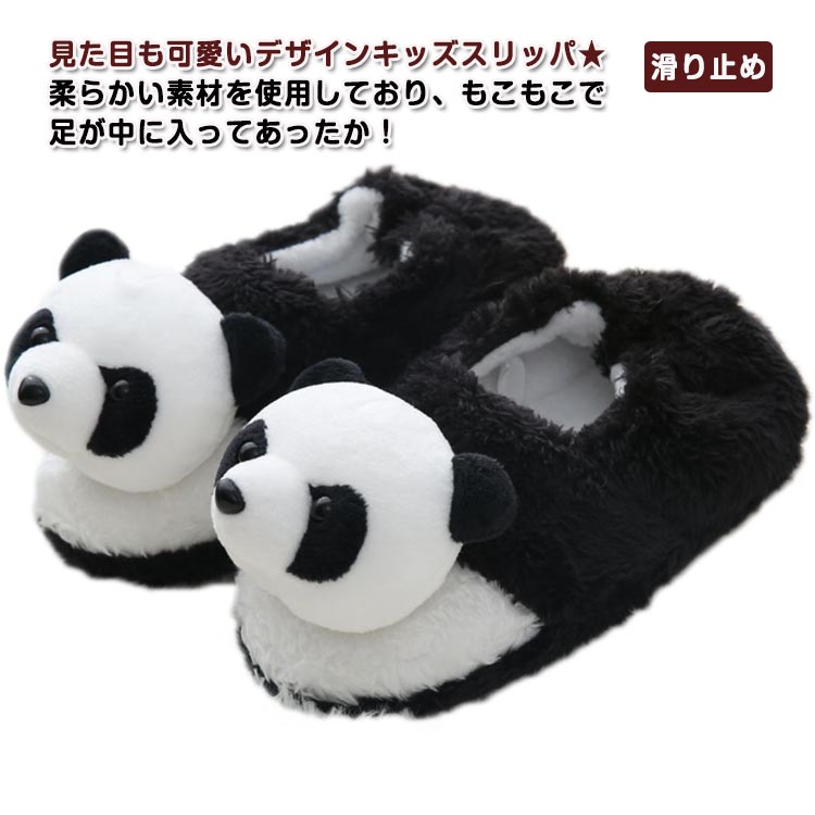 ■スリッパ キッズ 子供 パンダ ルームシューズ 女の子 もこもこ パンダ柄 かわいい ふわふわ かかと ふわふわ 滑り止め 子ども こども ル