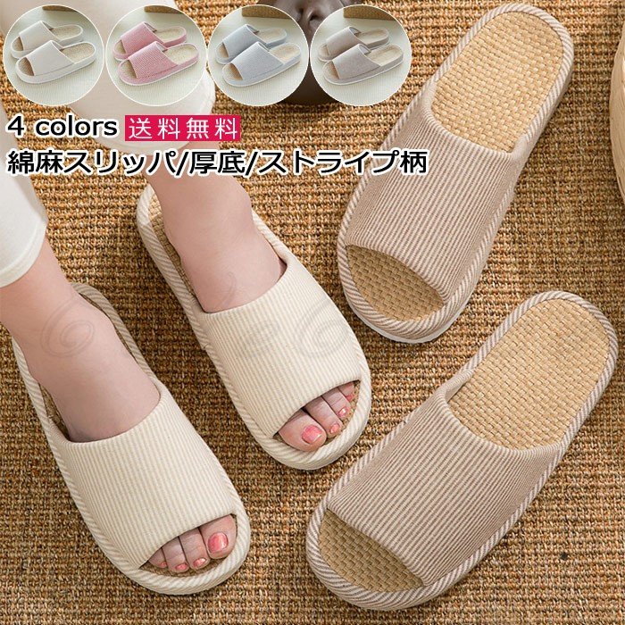 ■スリッパ レディース メンズ ルームシューズ ストライプ柄 綿麻 厚底 室内履き 滑り止め 春夏秋 歩きやすい 履きやすい オシャレ