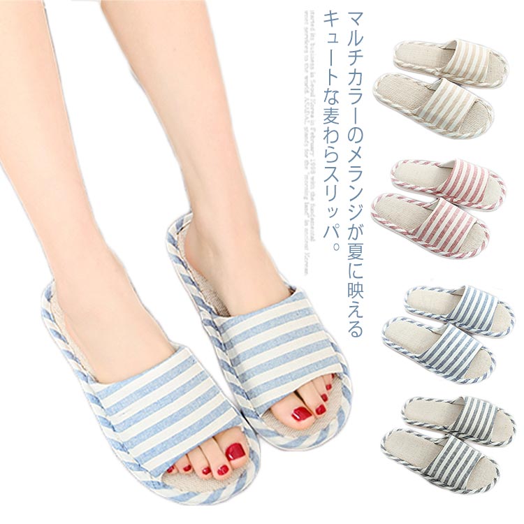 ■スリッパ レディース メンズ 男女兼用 麦わら 涼しい フラット サマーサンダル カジュアル ルーズシューズ 滑りにくい 室内履き シンプル