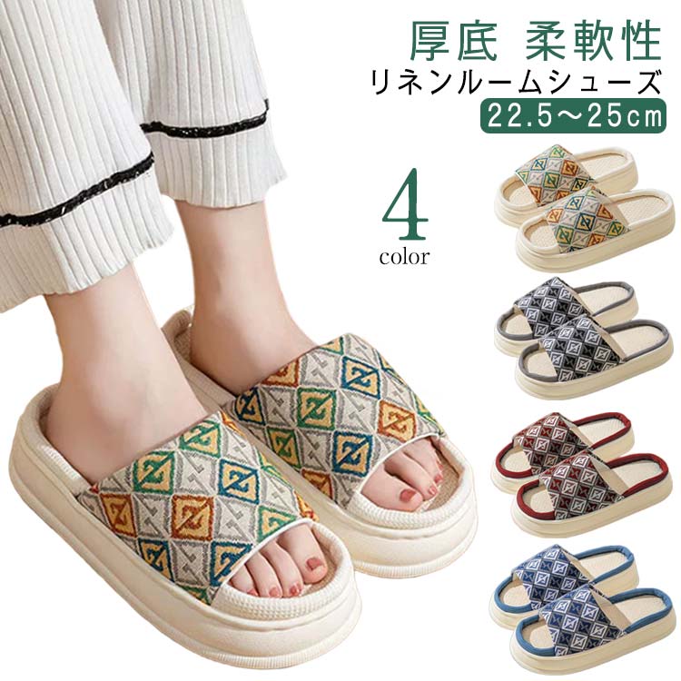 ■さらさら リネン スリッパ 快適 ルームシューズ 洗える かわいい サンダル ルームシューズ 柔らかい 吸湿 あさ レディース 柔軟性 室内
