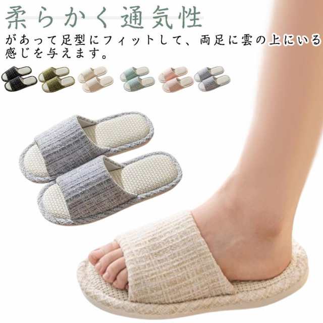 蒸れない かわいい スリッパ 夏用 リネン 室内用 レディース 通気性 速乾 夏用 在宅ワーク 柔らかい 来客用 滑りにくい ルームシューズ 春 秋 夏 可愛い 引越し