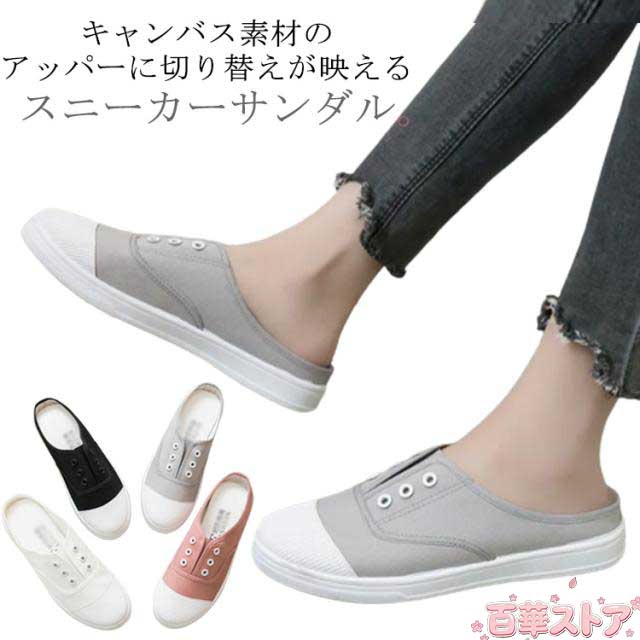 シューズ型サンダル 靴 シューズ サンダル キャンパス レディース かかとなし スニーカー スリッポン シューズ 靴 スリッパ ローカット ミュール サンダル ベランダ 玄関 シンプル カジュアル ホワイト グレー ブラック ピンク