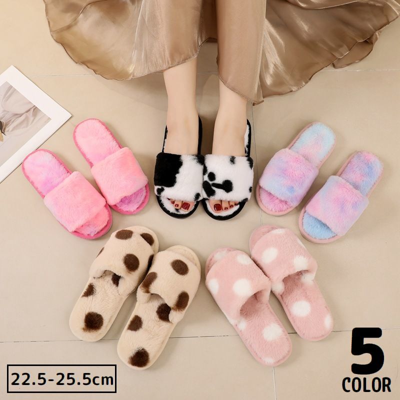 ■スリッパ ファーサンダル ルームシューズ 室内履き レディース ふわふわ もこもこ 厚底フラット 前開き 滑り止め 防寒 暖かい