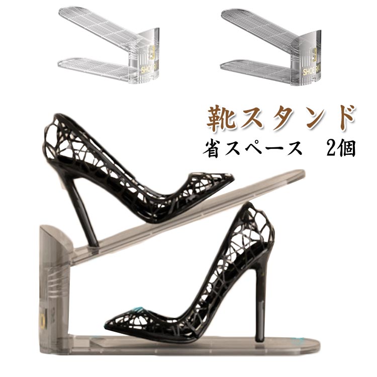■くつ シューズホルダー 2個組 靴収納 ハイヒール 靴 玄関収納 スタンド スリム クツ シュースペースセーバー 収納 ホルダー スリッパ ス