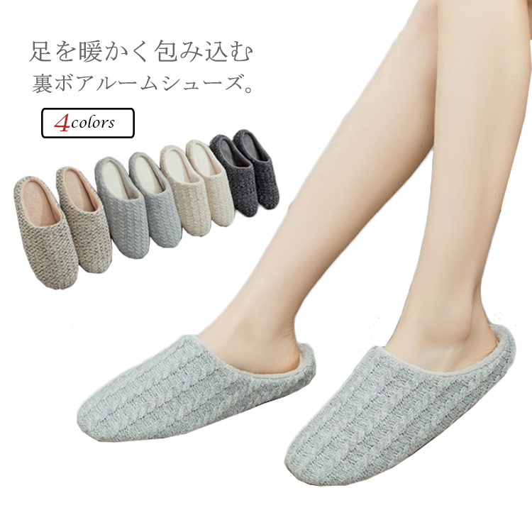 ■裏ボルームシューズ レディース メンズ スリッパ 裏ボアアスリッパ 裏起毛スリッパ 裏起毛 裏ボア ニットスリッパ 厚手 あったか 暖かい