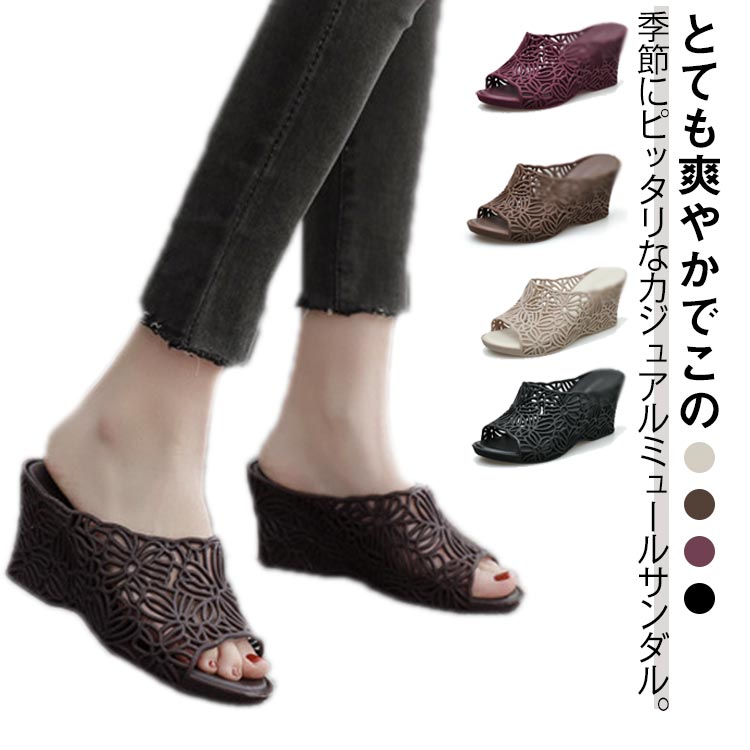■PVC 美脚 オープントゥ ミュール ウェッジソール スリッパ サボサンダル 厚底 ビーチサンダル コンフォート サンダル サボ サンダル レ