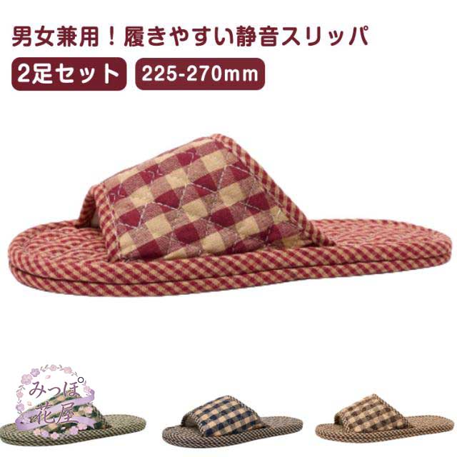 洗える スリッパ メンズ 通気性 ルームシューズ 疲れない 静音スリッパ 軽い レディース 2足セット 綿 蒸れない 前開き 兼用 ルームシューズ 軽量 室内 室内履き 春 夏 滑り止め 秋 来客用 おしゃれ かわいい 大きい サイズ 小さい チェック柄 履きやすい