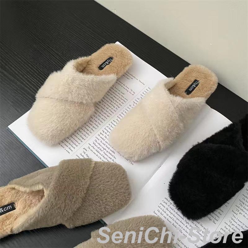 ■ファーサンダル レディース ファースリッパ モコモコ スリッパ ぺったんこ ミュール 滑り止め ルームシューズ 女性 室内靴 外出靴 可愛い