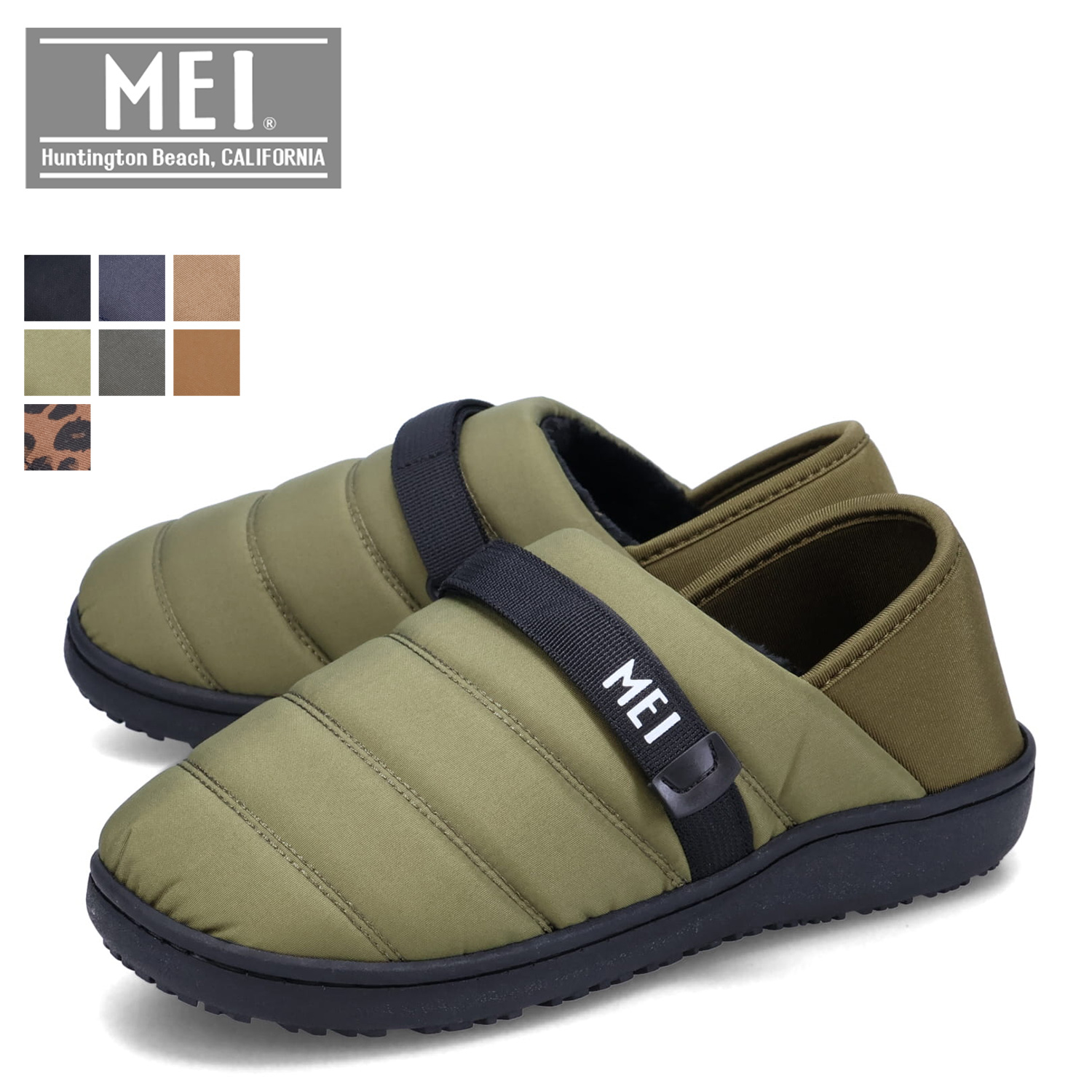 商品番号 mei-shm-233003【アウトドア・サーフスタイルと、時代と共に進化し続けるファッションカルチャーブランド MEI】ルームシューズにも使えるMEI(メイ)のモックシューズ。スリッポンタイプで内側にフリースをあしらい、寒い日でも足元を暖かくしてれ、ルームシューズやスリッパのようにも履けるのが魅力的。踵を踏んで履けるバブーシュスタイルなので、脱ぎ履きしやすく、アウトドアなどでも活躍してくれる一足。ベルトでフィット感の調節が可能です。カラーも豊富なので、様々なコーディネートに合わせやすくなっています。■ブランド名 / 商品名MEI メイ / BELT MOCSHOES MEI-SHM-233003■カラーブラック:BLACKネイビー:NAVYベージュ:BEIGEカーキ:KHAKIオリーブドラブ:OLIVE DRUBキャメル:CAMELレオパード:LEOPARD■素材 / 仕様アッパー:ポリエステル 100%踵部分:ポリエステル 83% ポリウレタン 17%ソール:合成底■生産国CHINA