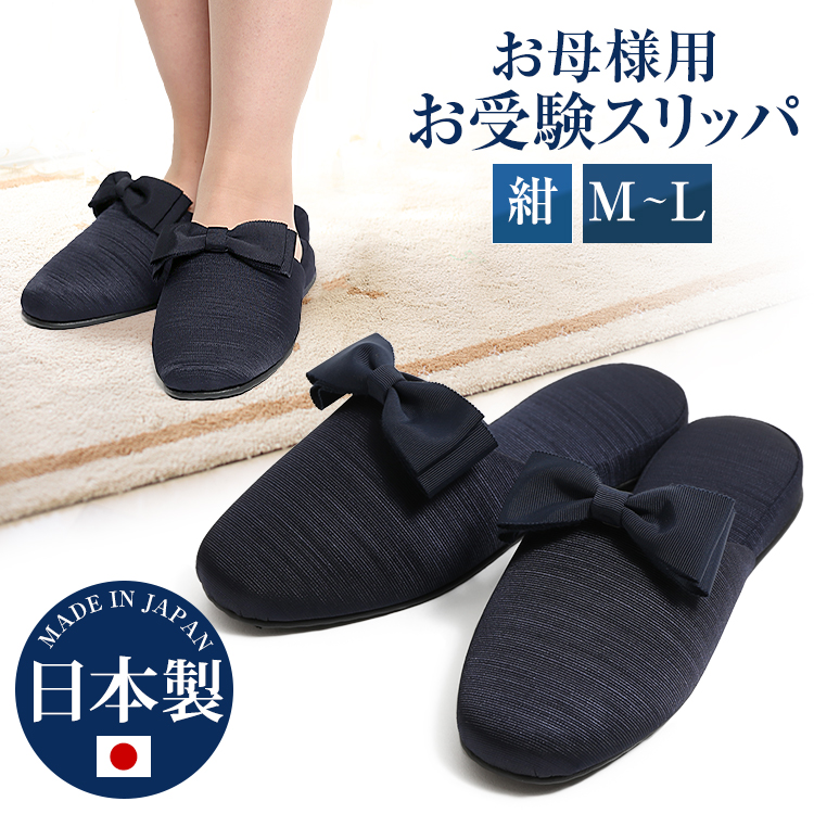 ■お受験 スリッパ リボン 面接 学校行事 入学式 入園式 卒業式 卒園式 学校説明会 レディース ママ 母 母親 紺 ネイビー SP-03-NVY