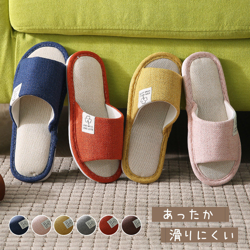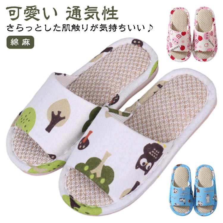 ■スリッパ 夏用 室内 防音 低反発 来客用 洗える クローバー株式会社 プリント おしゃれ かわいい 麻素材 トイレ 滑りにくい ふかふか オ