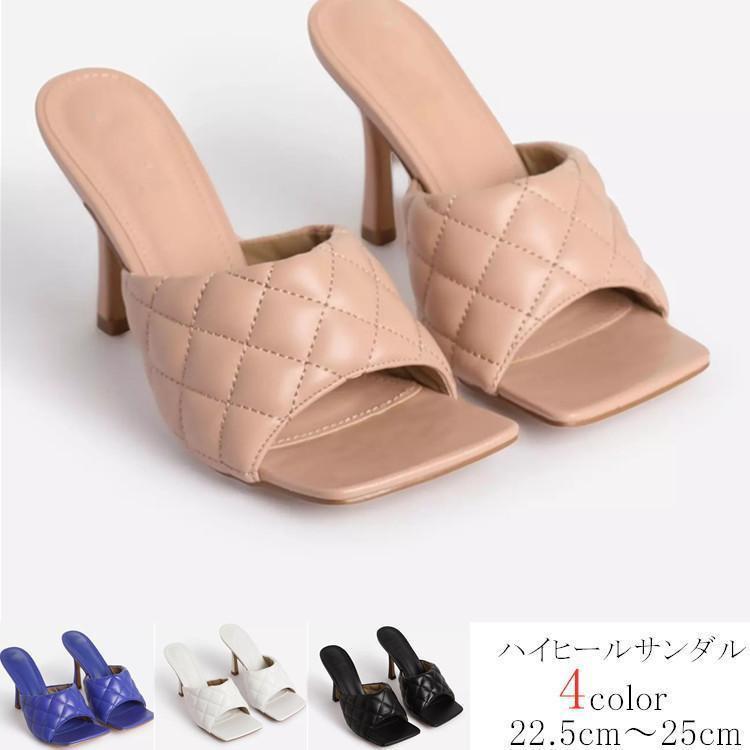 ■スクエアミュールサンダル レディース ヒールサンダル ハイヒール スクエアトゥ ミュール ノーストラップ スリッパ 通勤 婦人靴 sandal