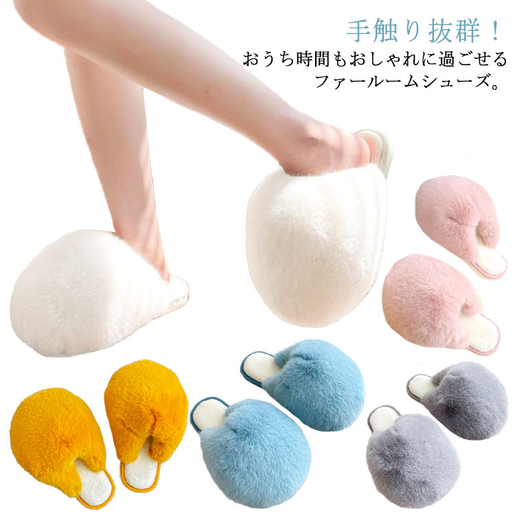 ■ファーサンダル サンダル ファー シンプル ぺたんこ ルームシューズ スリッパ もこもこ ファー サンダル フェイクファー ボアスリッパ ふ