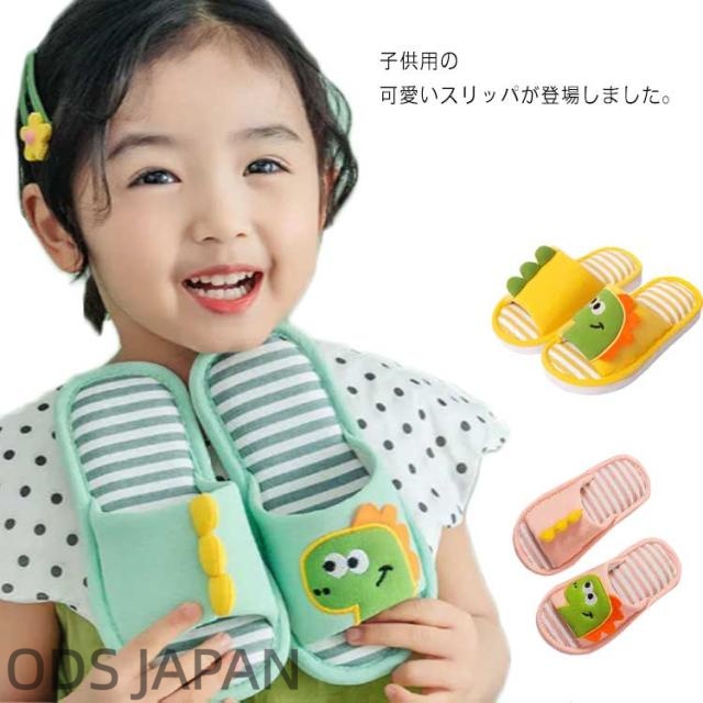 スリッパ 子供用 ルームシューズ 綿麻 前開き 恐竜 可愛い リネン キッズ 部屋用 室内履き 女の子 男の子 柔らかい 通気性 吸汗 幼児 かわいい ボーイズ ガールズ オールシーズン 送料無料