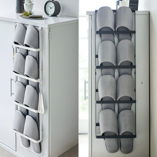 ■スリッパラック 壁掛け 3way スリッパ 収納 下駄箱扉 & 引っ掛け式 スリム スリッパホルダー 黒 サイド吊り下げ式シューズキャビネットフッ