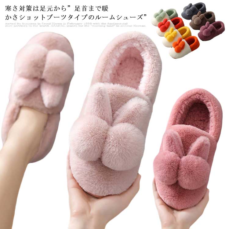 ■ルームシューズ もこもこ スリッパ キッズ 子供 大人 冬 あったか レディース 女の子 ウサギ 裏起毛 シャギー ボア ボリューム チェリー