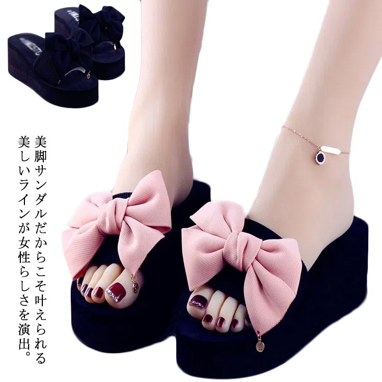 ■サマー リボンサンダル スリッパ ヒール 厚底 リゾートサンダル 歩きやすい ヒールサンダル 痛くない おしゃれ 室内 室内履き 学校 携帯