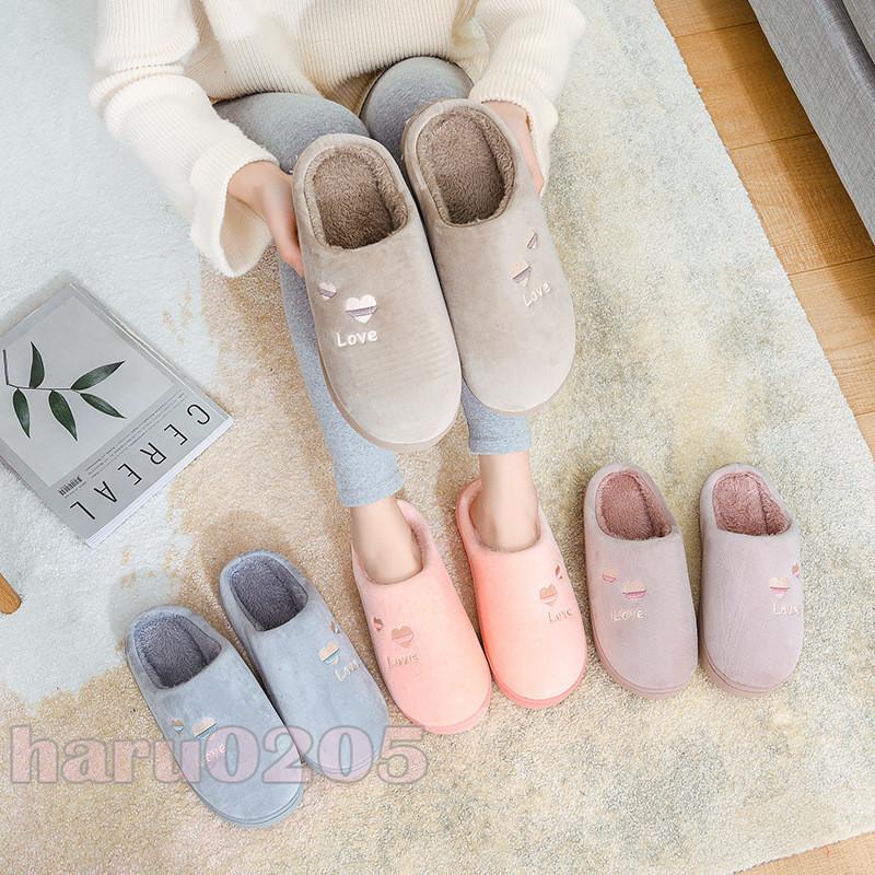 ■スリッパ 冬用 もこもこ あったかい ボアスリッパ カープルお揃い ハート柄 防寒 暖かい 柔らかい 洗える 滑り止め 静音 室内履き オフィ