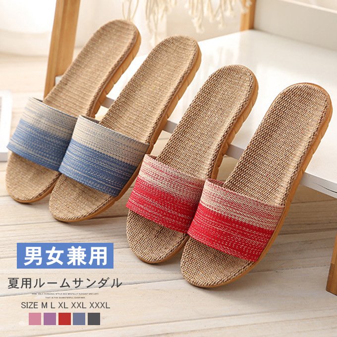 ■男女兼用 麻 ハット風 リネン 夏用ルームサンダル スリッパ 男女兼用