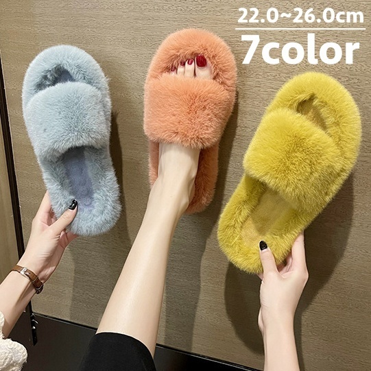 ■スリッパ オープントゥ 前開き ルームシューズ 部屋履き レディース 女性 フラット フェイクファー 室内 ふわふわ もこもこ