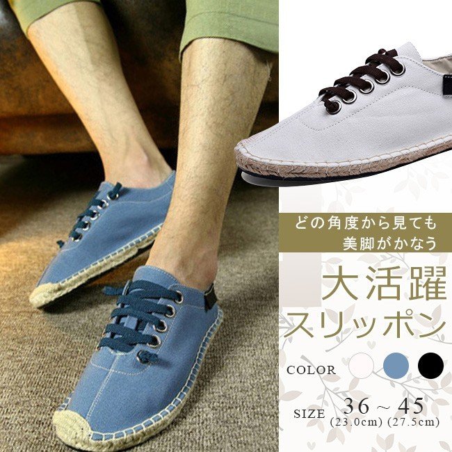 ■スリッポン エスパドリーユ 男女兼用 カップル 軽量 シューズ スリッパ フラット カジュアル 履きやすい おしゃれ フラットシューズ レー