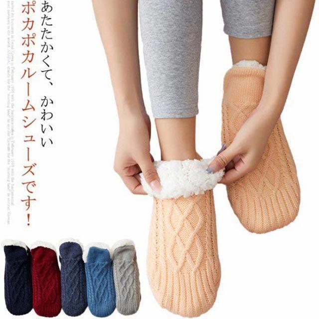 ■ルームシューズ ルームソックス 靴下 ニット くるぶし ニットフットカバー もこもこ 裏ボア 厚手 防寒 秋 冬 滑り止め付き スリッパ