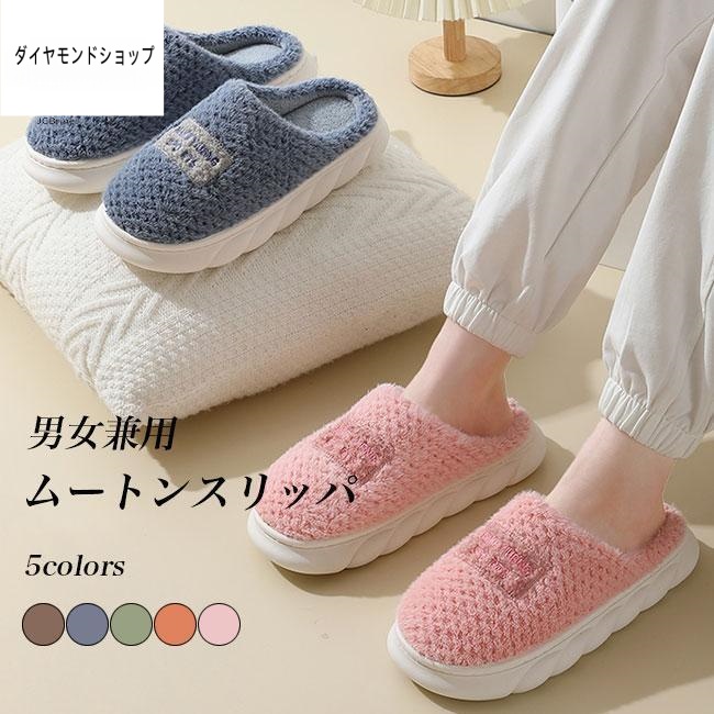 ■冬スリッパ 裏ボア レディース ボアスリッパ ルームシューズ 冬 メンズ ムートンスリッパ 軽量 あったか スリッパ 厚底 大人 屋内履き ム