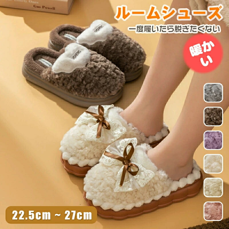 ■22.5-27cm 冬用 ルームシューズ ルームスリッパ ペア ボア スリッパ ふかふか かわいい 部屋履き 来客用 オフィス 室内用 寒さ対策 防寒