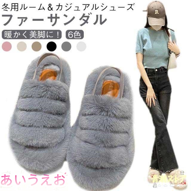 ■暖かい レディース ファー 冬 おしゃれ モコモコ ボア サンダル ルーム ファーシューズ シューズ ミュール スリッパ ミュール 足元 冷え