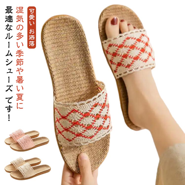 ■スリッパ お洒落 蒸れにくい 自宅用 ルームシューズ 春夏 トイレ レース レディース 可愛い 静音 シンプル 室内履き 滑り止め 洗濯可能
