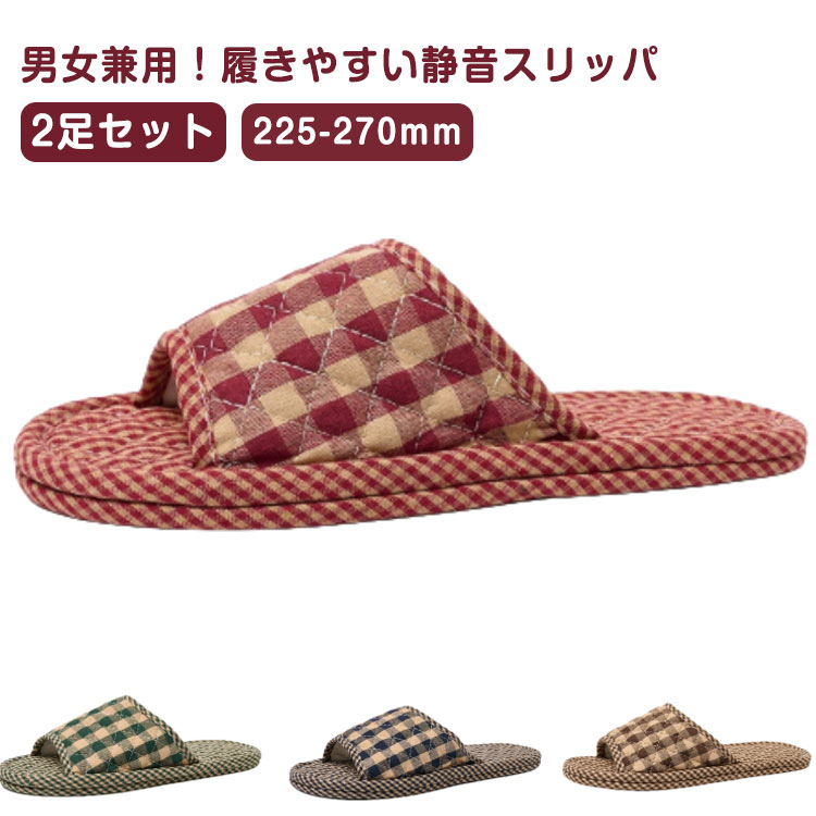 ■ルームシューズ スリッパ 静音スリッパ 前あきスリッパ 2足セット 洗える 滑り止め 軽い レディース メンズ 綿 蒸れない 通気性 前開き