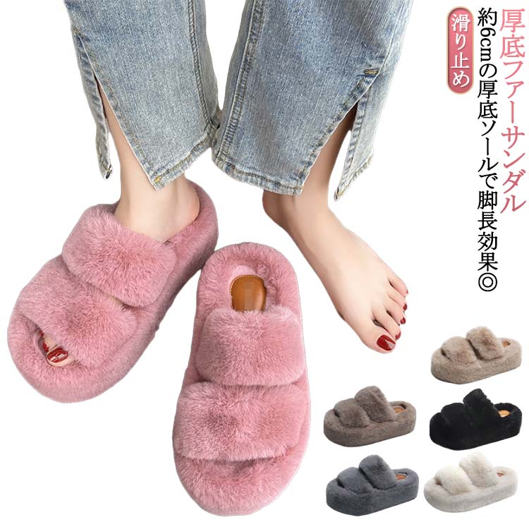 ■スリッパ もこもこ 厚底 美脚 ファー付き シューズ ルームシューズ 美脚 ファーサンダル ふわふわ ミュール ファーサンダル あったか 歩