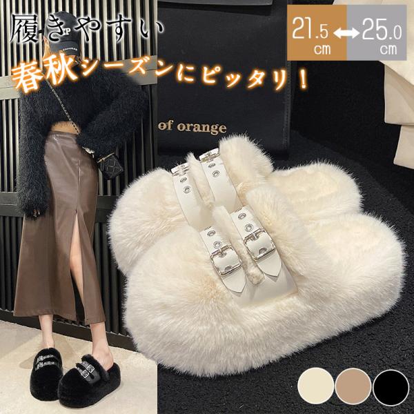 ■サンダル レディース ふわふわ 厚底 レディース スリッパ かわいい 秋冬 ふわふわ もこもこ あったか おしゃれ