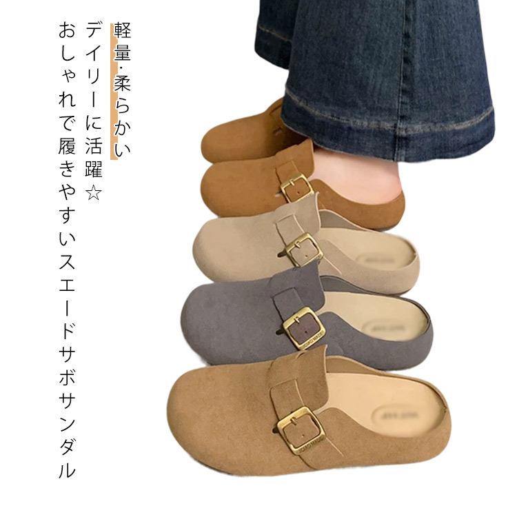 ■サボサンダル スエード ぺたんこ レディース 外履き サボ フラットシューズ モカシン オフィス サンダル スリッパ かかとなし シューズ