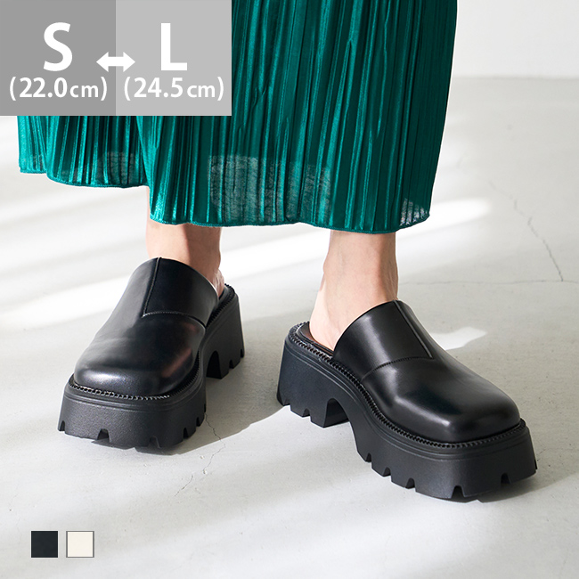 ぽってりフォルムのプラットフォームサンダルで旬シルエットコーデに プラットフォームサボサンダル存在感のある厚底が目を惹くサボサンダル。ぽってりとしたフォルムのスクエアトゥが一気にコーデのトレンド感をプラス。シンプルなデザインと素材なのでどんなお洋服にも合って使いやすい!おしゃれなタウンユースはもちろん、サッと履けるのでちょっとそこまでのお出かけにもぴったりの1足です。【アイテムスペック】▼サイズ【S(22.0〜22.5cm)】足長(木型):23.0cm/足幅(木型):7.6cm【M(23.0〜23.5cm)】足長(木型):24.0cm/足幅(木型):7.8cm【L(24.0〜24.5cm)】足長(木型):25.0cm/足幅(木型):8.0cm※掲載サイズは、靴のラスト(木型)のデータです。手作りの商品の為、製造段階で個体差が生じます。ヒールの高さ:約6.0cm素材:合成皮革片足重量:約335g<Mサイズ 計測>ワイズ:2E