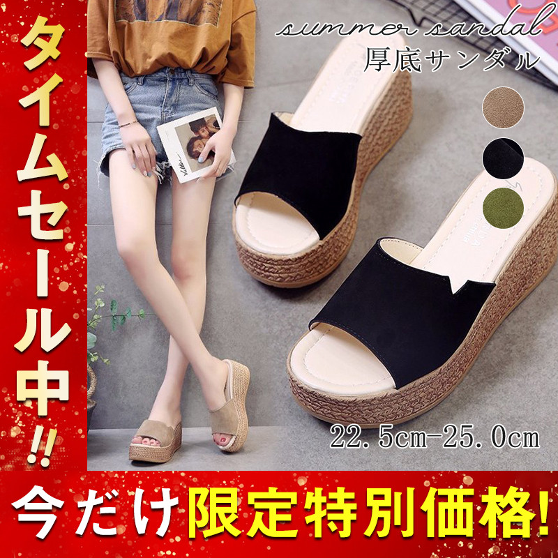 ■サンダル レディース 厚底 ウェッジヒール 歩きやすい 痛くない 走れる スリッパ ヒール 大きいサイズ 女性 婦人 美脚 おしゃ