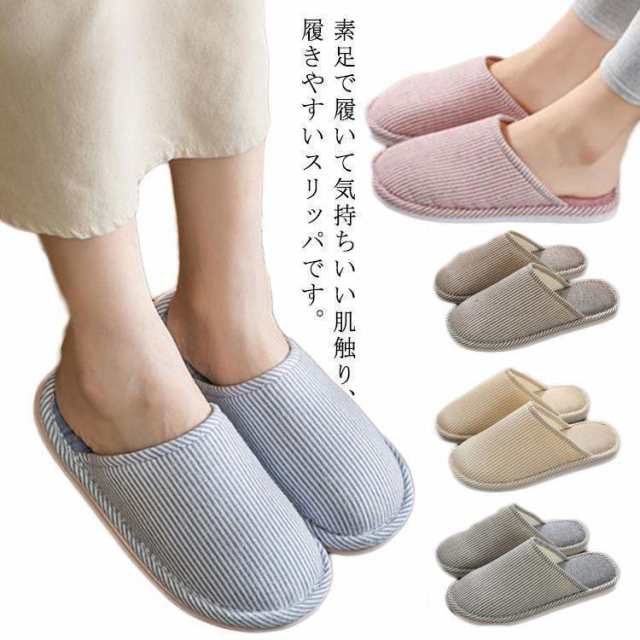 ■スリッパ ストライプ ルームシューズ 静音 洗える 室内 低反発 北欧 部屋 来客用 レディース メンズ カップル 男女兼用 静音スリッパ 業