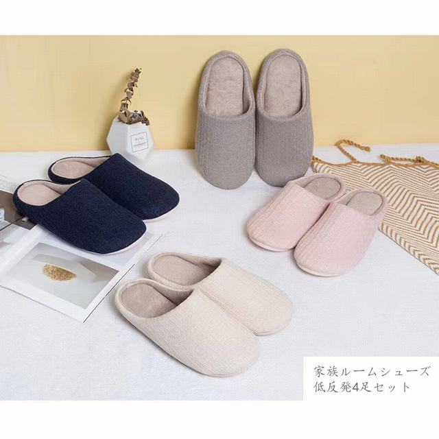【甲素材】: 綿【ソール素材】: PVC【4足セット】:ネイビー+グレー(メンズ最大27cmまでの方に)ピンク+ベージュ(レディース最大25cmまでの方に)用4足セットです。※どちらかの色が品切れになった場合は別の色が発送する可能性がございます。ご了承ください。【足元に優しい低反発スリッパ】スリッパの中敷にはクッション性に優れたふんわりやわらかな素材を採用し、弾力性と耐久性が抜群です。しっかりとした中底の厚みとふかふかのクッション性で、足裏を優しく包むこむ、履き心地をお楽しみいただけます。【滑りやめ?静音なルームシューズ】360度曲げられる柔軟なPVC素材を使用滑りやめ加工で滑らない室内スリッパです。静音加工なので、歩いた時にバタバタと音が鳴りにくく、マンションやオフィスなどの音が気になる場所に最適です。【蒸れにくく?洗えるスリッパ】手洗いも洗濯機にも対応可能な洗えるスリッパです。毎日使うものだから、洗える素材を使用し、汚れても気軽に手洗いしていただけますので、いつも清潔でキレイにお使いいただけます。蒸れにくく、着脱しやすいスリッパタイプで、いつでも快適に足元を暖めてくれます。