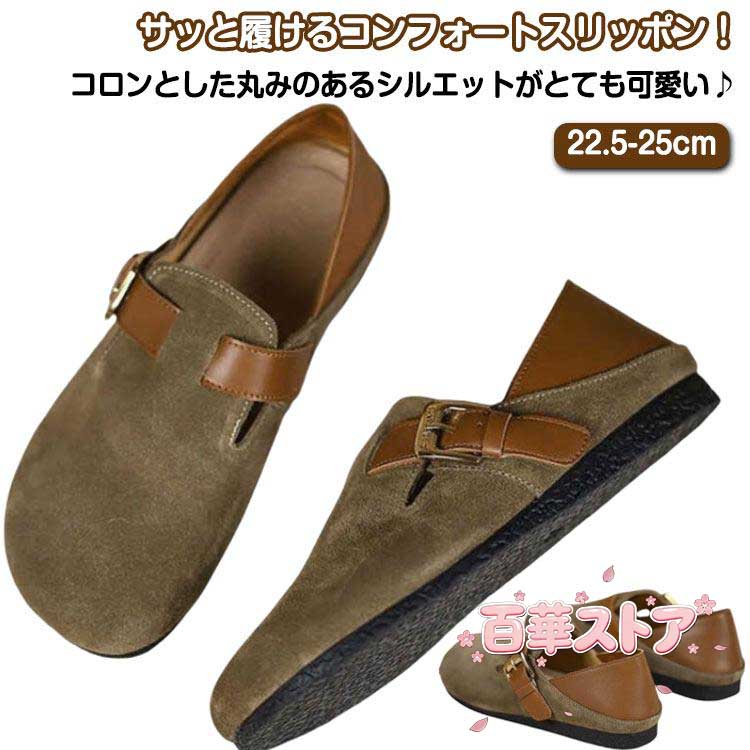 ■スリッポン レディース シューズ 靴 スリッパ サンダル クロッグ スウェード フェイクスウェード バックル ぺたんこ 軽い 厚底 靴 サボサ