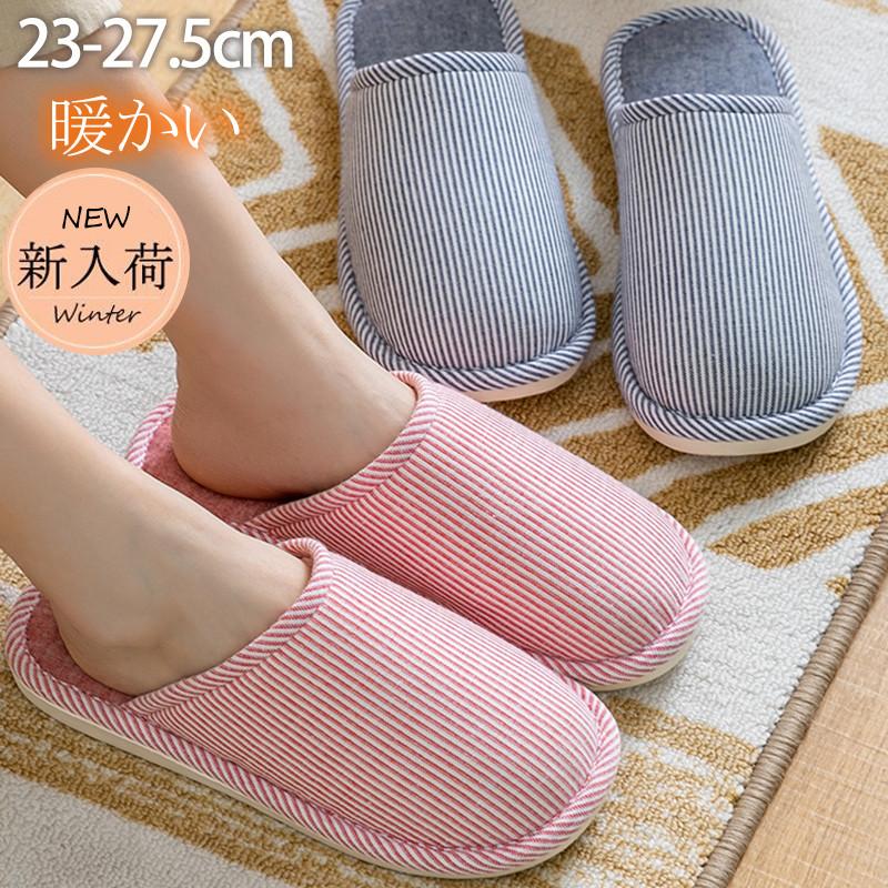 ■スリッパ レディース メンズ ルームシューズ ぺたんこ ミュール 来客用 ストライプ 暖かい 滑り止め ゆったり シンプル 冬 室内 防寒 お