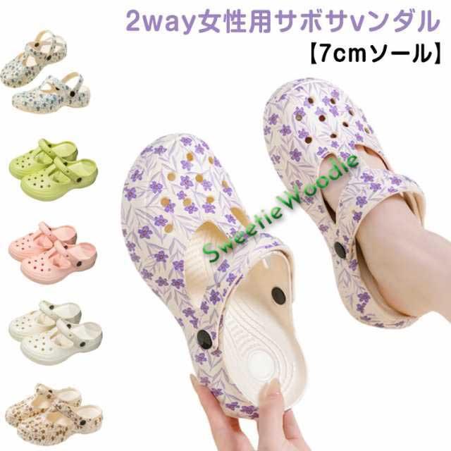 ■コンフォートサンダル レディース 2WAY EVA 夏用 2WAY 軽量 花柄 靴 つっかけ スリッパ サボ シューズ 厚底 防水 防滑 カジュアル レイン